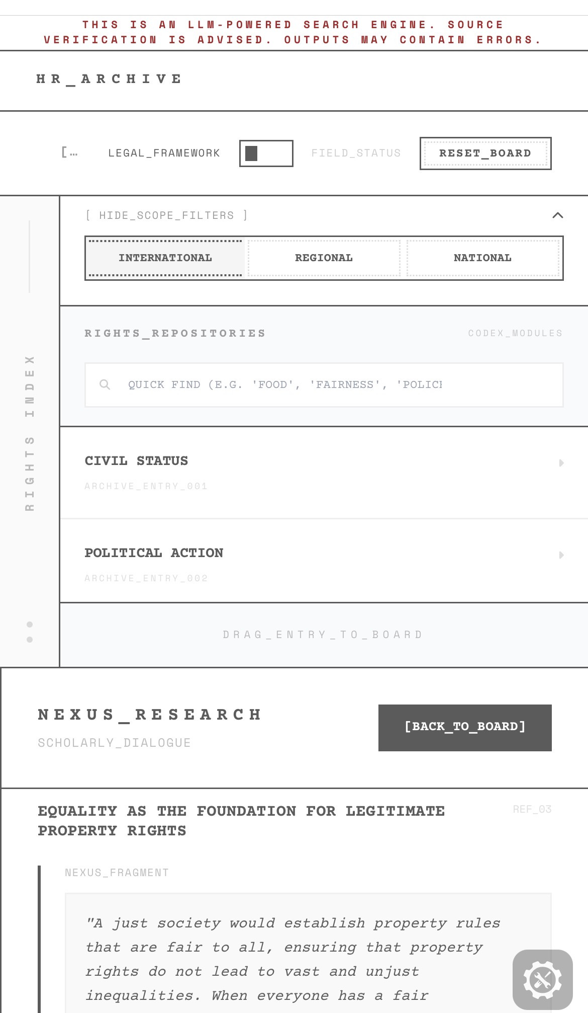 As I was writing this essay, I wanted a way to better navigate these connections. So I built a simple platform to explore human rights as interconnected structures. It lets you look up rights across different conventions, see research on their current status, and explore how different rights influence one another. You can test it here. Also, the repository is available on GitHub with full technical details in the README.